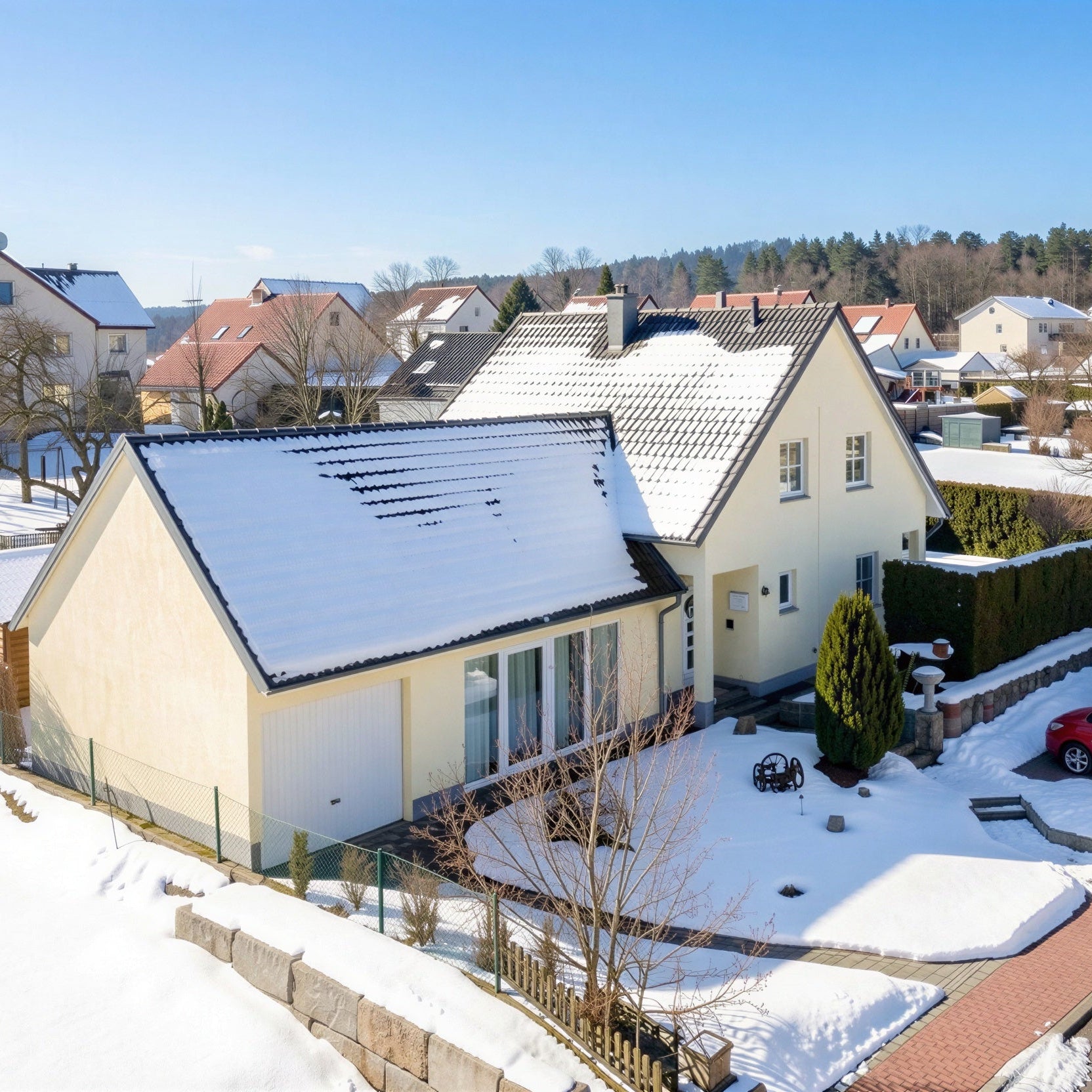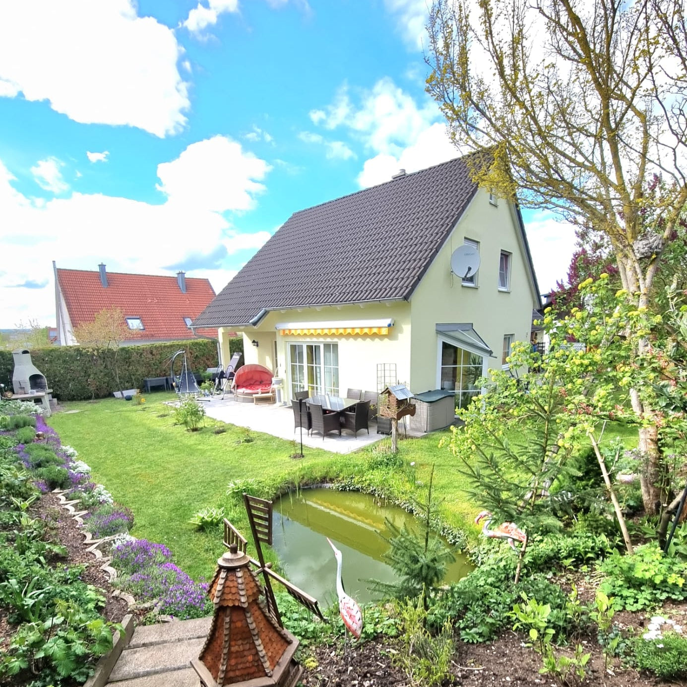 Zusätzlich zur Garage bietet das Haus weitere Außenstellplätze und einen Carport.