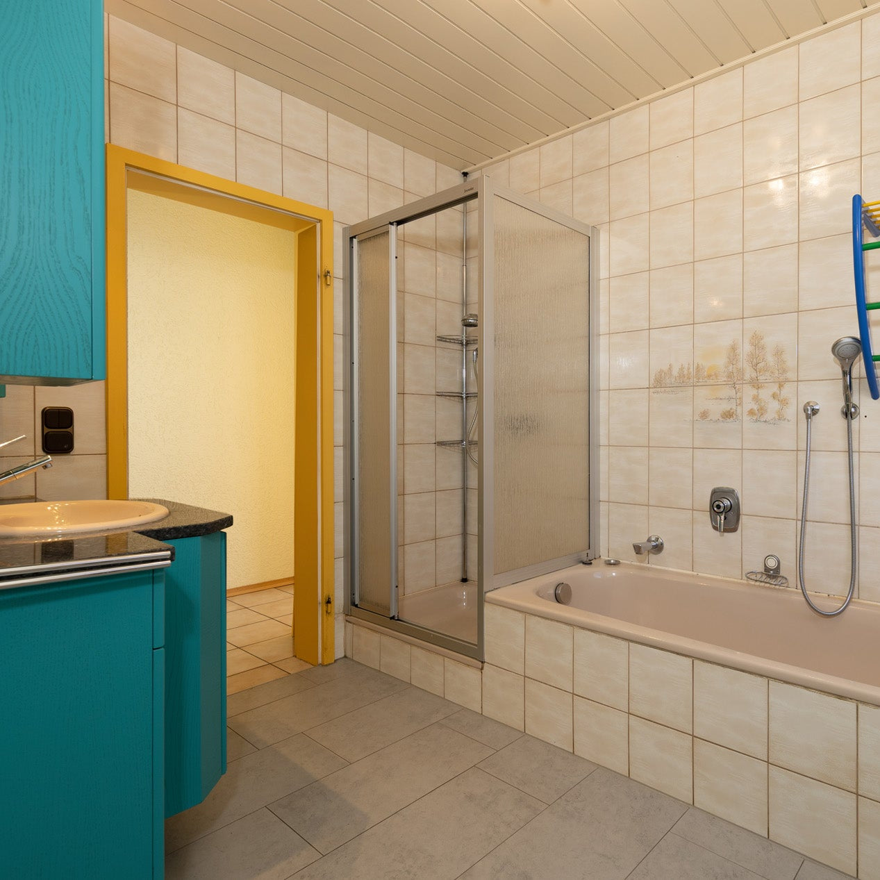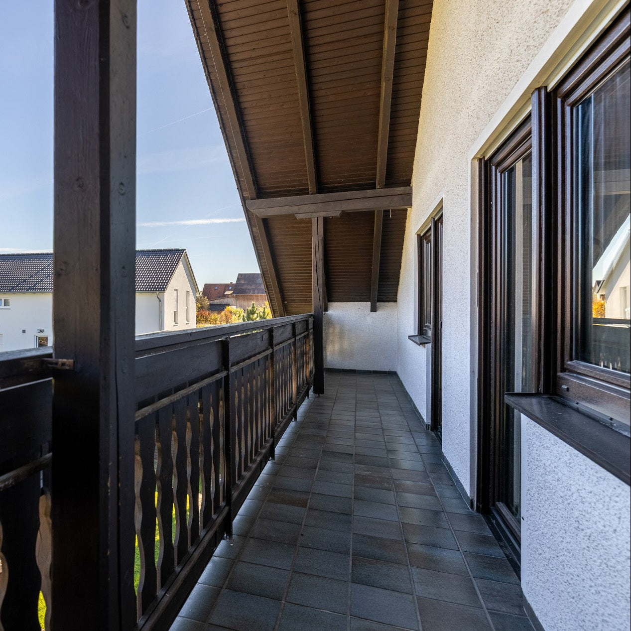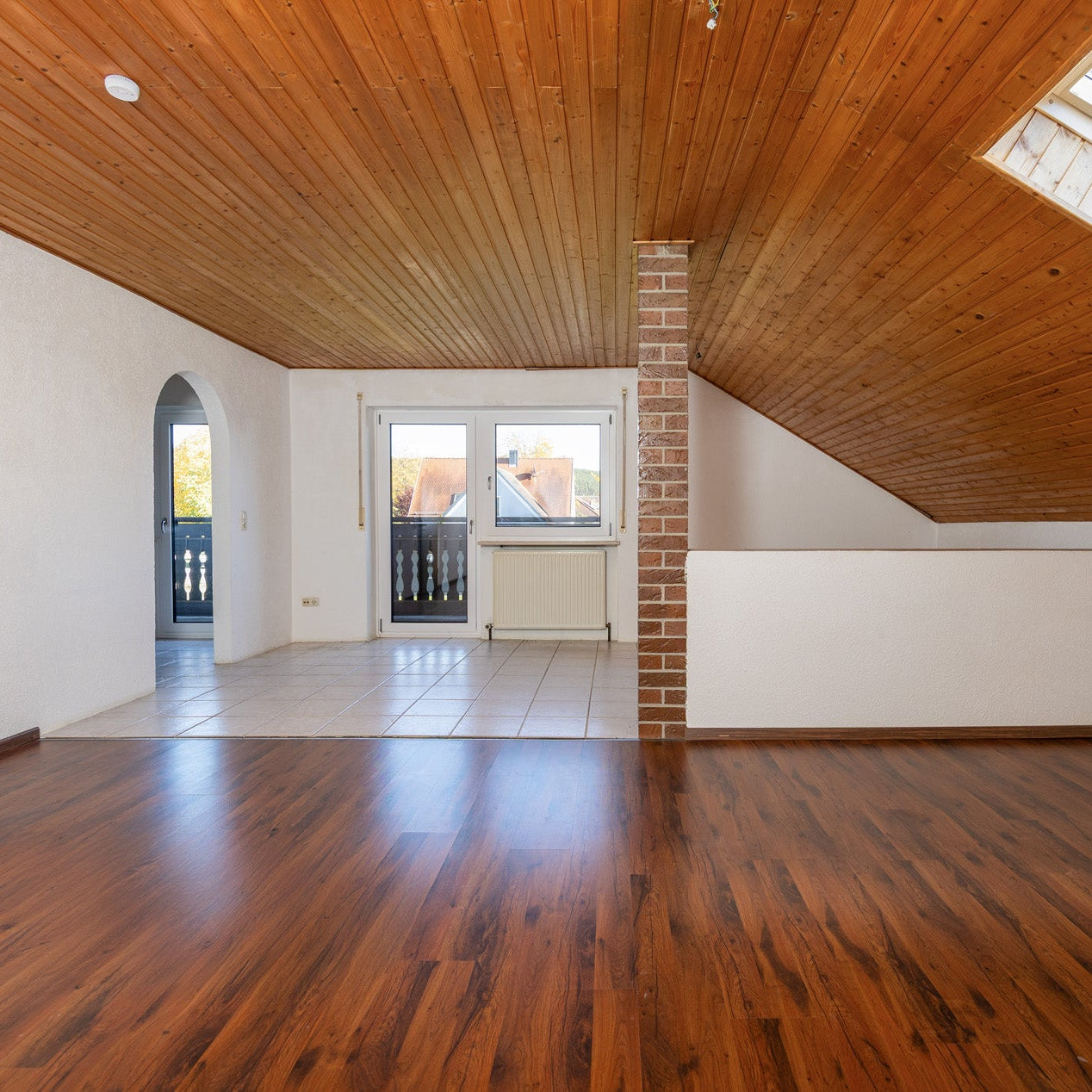 Das Obergeschoss bietet eine große 3.5-Zimmer-Wohnung mit Balkon und Einbauküche. Im Obergeschoss wurde bereits das Bad modernisiert und in 2016 moderne, 3-fach-verglaste Fenster eingebaut.