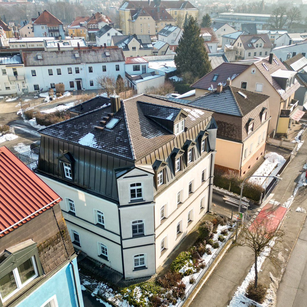 Besondere Highlights sind die an den Jugendstil erinnernde Fassade mit optischen Gliederungen, hochwertige segmentbogenförmige Fenstern und dem auffälligem Mansarddach. Besonders "wertvoll" in dieser Stadt-Lage ist der große Hof mit seinen 5 Einzelgaragen und 3 Außenstellplätzen.