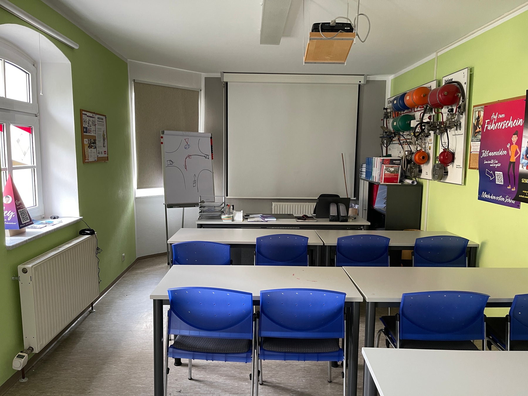 Im Erdgeschoß befindet sich neben einem Fahrschul-Schulungsraum eine 2 Zimmer-Wohnung mit überdachtem Freisitz. Sowohl im Obergeschoss, als auch im Dachgeschoss befinden sich 2 großzügige und helle 3,5-Zimmer-Wohnungen mit Balkonen, das Mansarddach bietet ein zusätzliches Appartement.